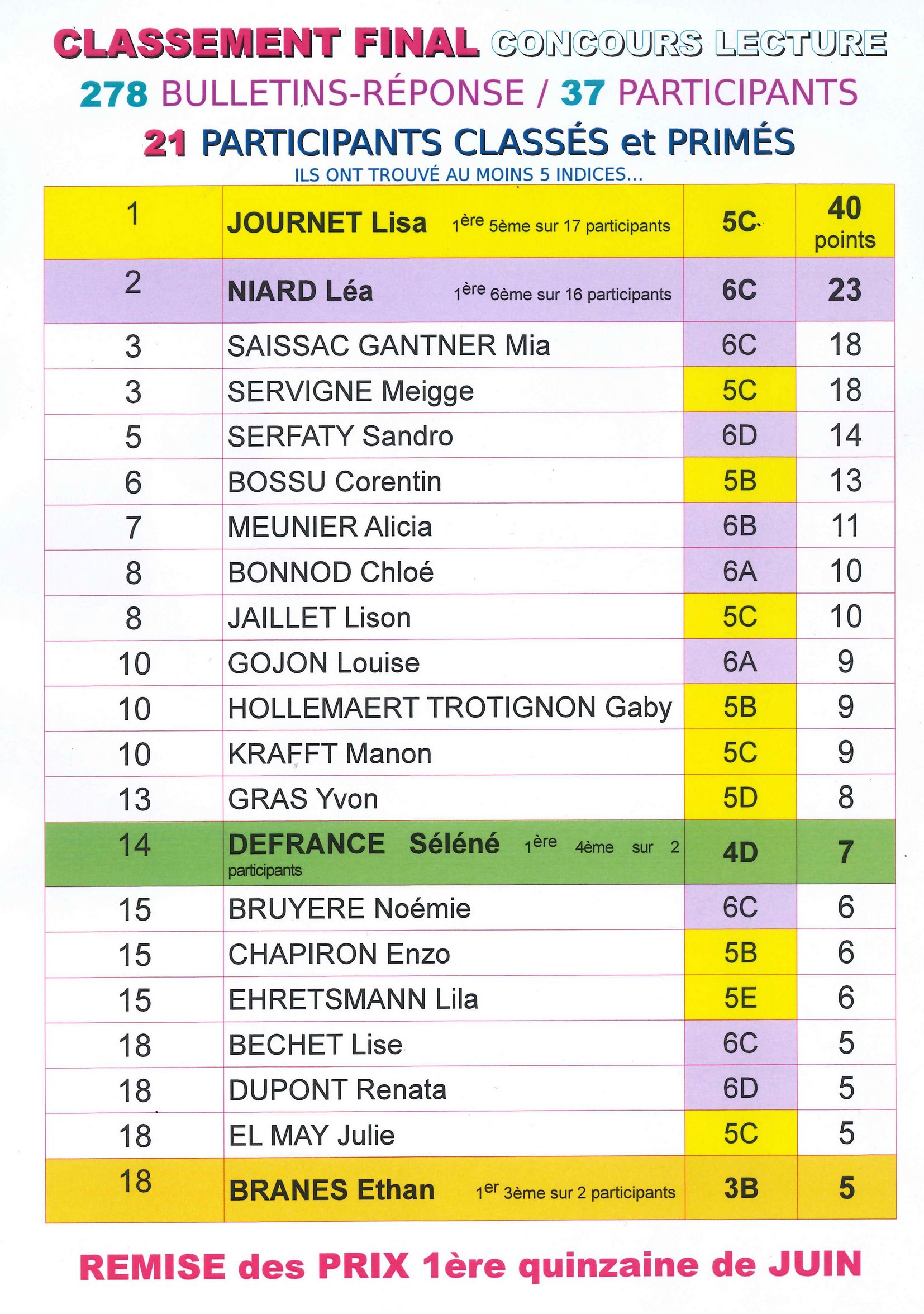 Le concours lecture 2024 est clos ! Découvrez le classement final ...