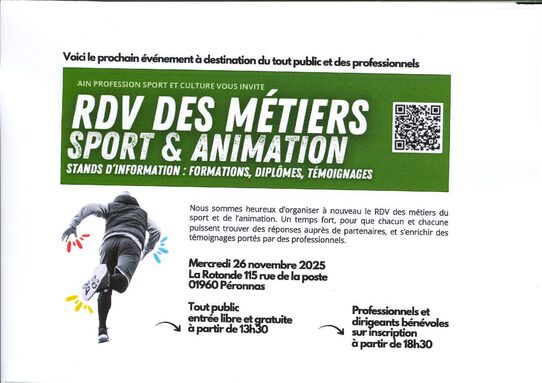 RDV DES METIERS SPORT ET ANIMATION MERCREDI 26 NOVEMBRE A PERONNAS